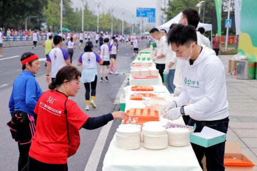 为助力跑者及时补充体能,金色印象充分发挥“美食”服务优势,在赛道关键节点设立能量补给站。除常规饮品与能量食品外,更精选健康食材,创新调配风味,为跑者提供营养与美味兼具的能量支持。这不仅是对体能的及时补充,也是金色印象“八位一体”健康服务模式中“生活阵地”的生动体现,让跑者在激烈竞技后感受到来自重庆本土品牌的暖心关怀。