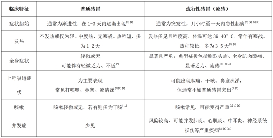 流感和普通感冒在临床表现上的主要区别在于:流感通常起病急骤,全身症状更为突出和严重;而普通感冒则起病相对缓和,以上呼吸道局部症状为主,全身症状轻微或无。[[2]]