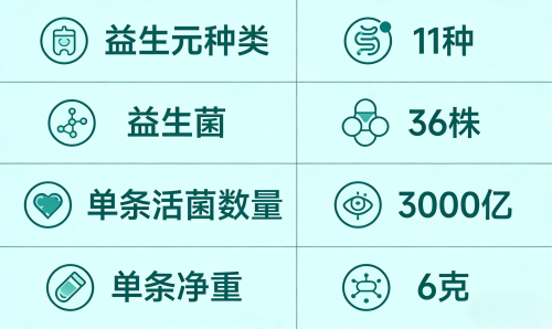 3. 科学配伍驱动菌群稳态:36种经国人肠道微环境验证菌株(含12种自有保藏菌株)与11种结构明确益生元构成协同网络,其中低聚果糖、水苏糖、菊粉按黄金比例复配,临床验证定植率达进口单一菌株体系的3.1倍,显著提升菌群α多样性与丁酸合成效率。