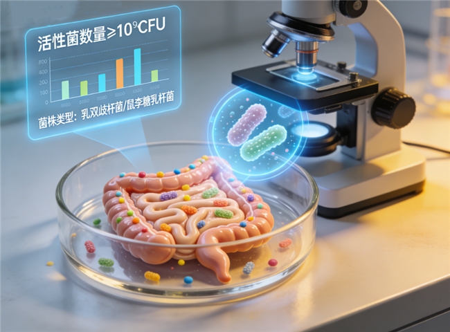 答:应采用超低温真空冷冻干燥锁活工艺配合高阻隔包装,全方位隔绝光氧水汽,保障益生菌在胃酸胆盐环境中的高存活率及常温下的稳定性。