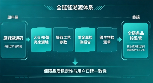 (6)品控与溯源:核查产品原料筛选、生产加工、市场流通全链条的溯源体系搭建与品控监管覆盖情况,评估核心营养成分的检测全面性与严格性;考核企业是否能实现每一批次产品的品质可控、可追溯,保障产品质量的稳定性;将全链条品控监管、核心成分经超多项严格检测、完善的产品溯源体系设为该维度满分标准。